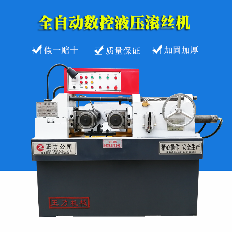 邢臺(tái)正力機(jī)械制造有限公司是國(guó)內(nèi)高端平價(jià)滾絲機(jī)專業(yè)化制造企業(yè)。 本公司是集研制、開發(fā) 、生產(chǎn)與銷售為一體的大型機(jī)械廠家,現(xiàn)主要產(chǎn)品有:滾絲機(jī),螺紋機(jī)床,縮經(jīng)機(jī),拔料機(jī),冷軋壓圓機(jī),雙組拉絲機(jī)等各種機(jī)械。地處燕趙大地南部邢臺(tái)市,是省級(jí)重合同、守信用、產(chǎn)品質(zhì)量穩(wěn)定型企業(yè),河北省消費(fèi)者協(xié)會(huì)信的過(guò)產(chǎn)品,產(chǎn)品暢銷全國(guó)各地,深受用戶的好評(píng)。          現(xiàn)擁有Z28-40、80、150、200、280、63型系列在五金建筑、汽摩配件、交通電力、標(biāo)準(zhǔn)件制作等高精度產(chǎn)品加工行業(yè)中,對(duì)高強(qiáng)度螺紋、網(wǎng)紋、花鍵、直斜紋、梯形螺紋、特殊軸類的滾軋加工有很強(qiáng)的優(yōu)越性,以高效、精密、快捷的工作原理深受廣大用戶的信賴。         專用的液壓縮徑機(jī)WL-25、36、48、60、型操作簡(jiǎn)便,適用范圍廣,生產(chǎn)效率高,使金屬擠壓快速成型,節(jié)約了原材料,提高了金屬密度和抗拉強(qiáng)度         本公司長(zhǎng)期供應(yīng)各種滾絲輪、縮徑機(jī)模具等各種配件。          產(chǎn)品暢銷河北,河南,山西,山東、遼寧、黑龍江、吉林、北京、天 津等省市自治區(qū)。我們不斷引進(jìn)國(guó)內(nèi)外先進(jìn)技術(shù),不斷優(yōu)化產(chǎn)品結(jié)構(gòu),精心鑄造產(chǎn)品質(zhì)量。王力品牌系列滾絲機(jī)、縮徑機(jī)、絲杠機(jī)是根據(jù)國(guó)內(nèi)的先進(jìn)機(jī)型加以改進(jìn),具有結(jié)構(gòu)設(shè)計(jì)科學(xué),結(jié)構(gòu)合理、能耗低、精度高、 使用壽命長(zhǎng)等優(yōu)點(diǎn)。         我們正被更多的朋友接受,認(rèn)可,因?yàn)槲覀冇谜嬲\(chéng)……